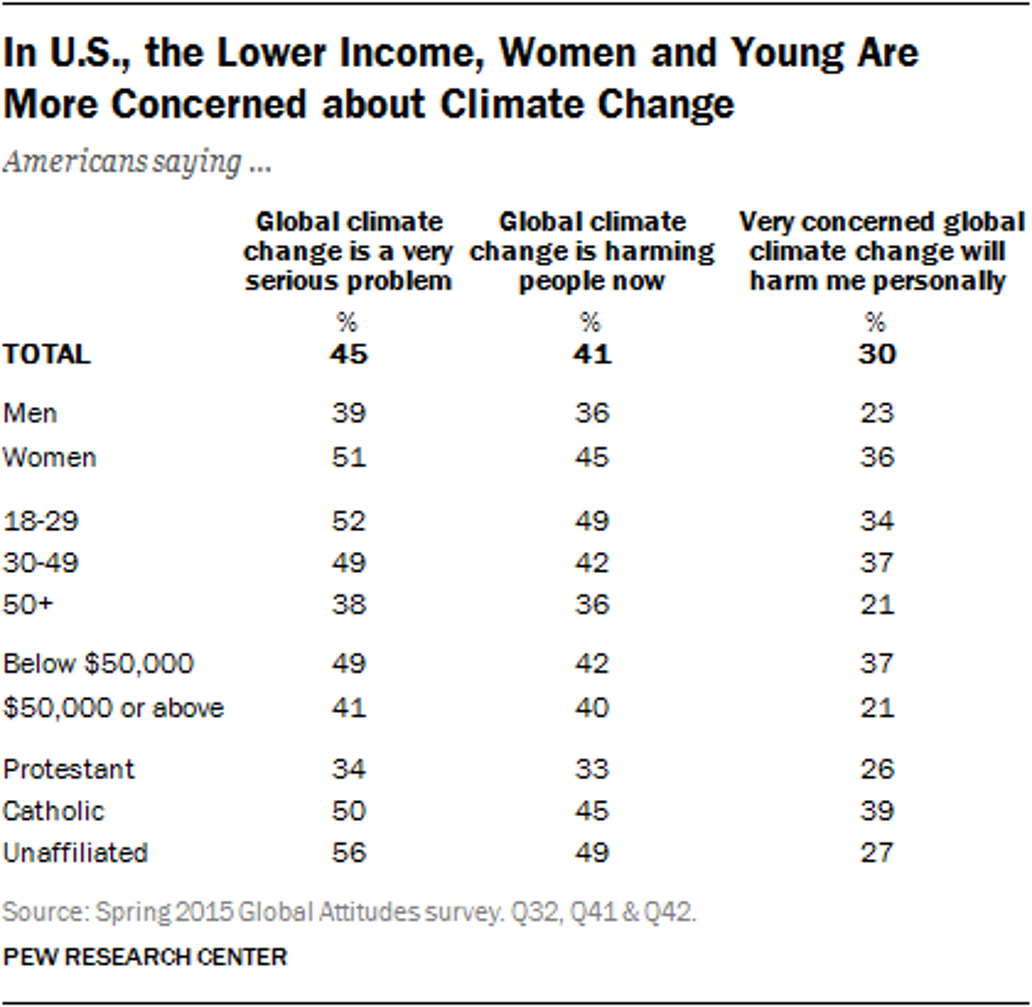 Si existe algún perfil que presta más atención a la ecología, quizá no es el esperado. En EE.UU., por ejemplo, mayor renta no quiere decir mayor preocupación por el cambio climático, sino al revés: