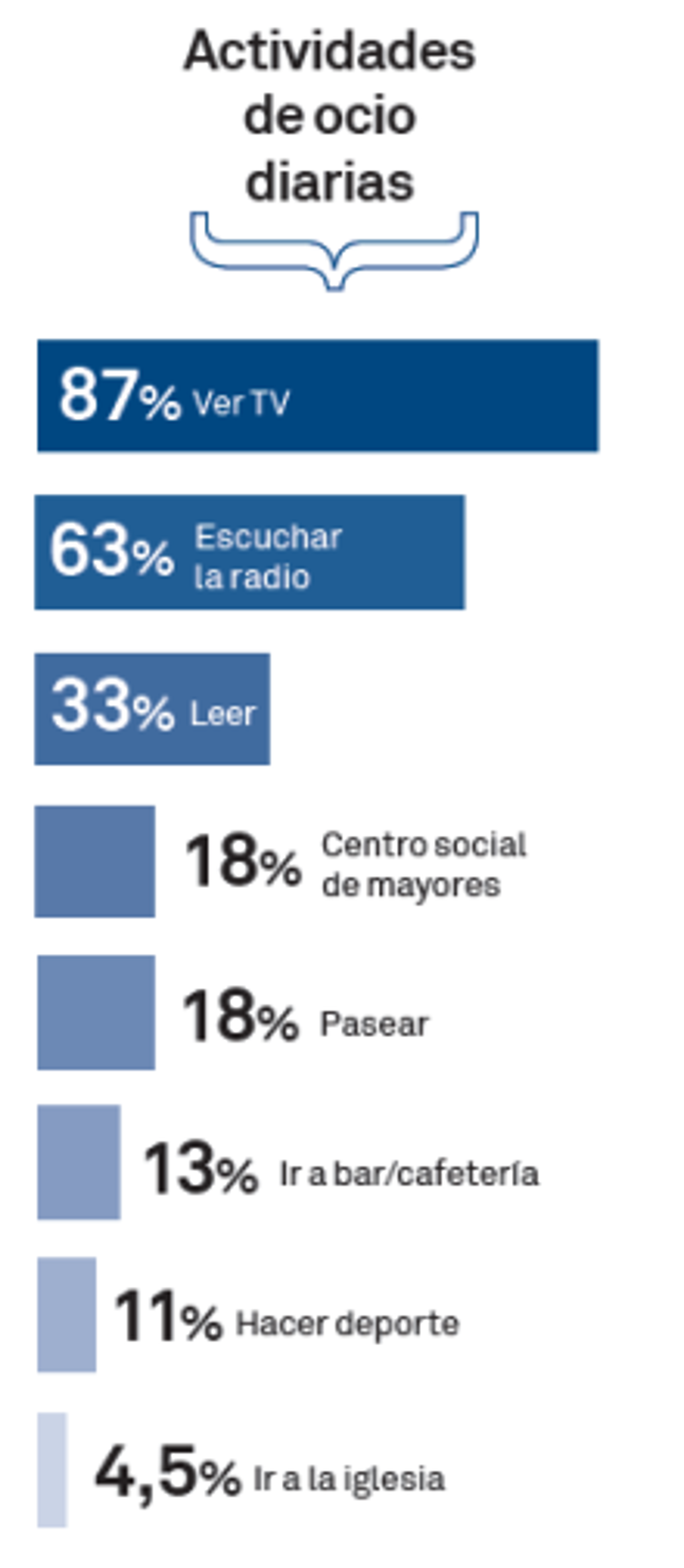 La participación en actividades sociales, culturales, deportivas y de voluntariado social contribuye a mantener el bienestar y la salud física y psíquica de los mayores, ya que les mantiene activos, aumenta sus relaciones sociales y les permite descubrir nuevos estímulos. El 54% de las personas mayores de 65 años ha iniciado nuevas actividades a partir de su jubilación, lo que fomenta el desarrollo de relaciones sociales. Las personas mayores tienen disponibilidad de tiempo, memoria, experiencia vital y una visión más completa de la vida, valores que bien pueden ser aprovechados en actividades como el voluntariado. Sin olvidar su otro gran papel hoy día: el cuidado de los nietos. Un 70% de las personas mayores de 65 años afirma cuidar o haber cuidado de sus nietos, sobre todo las mujeres.