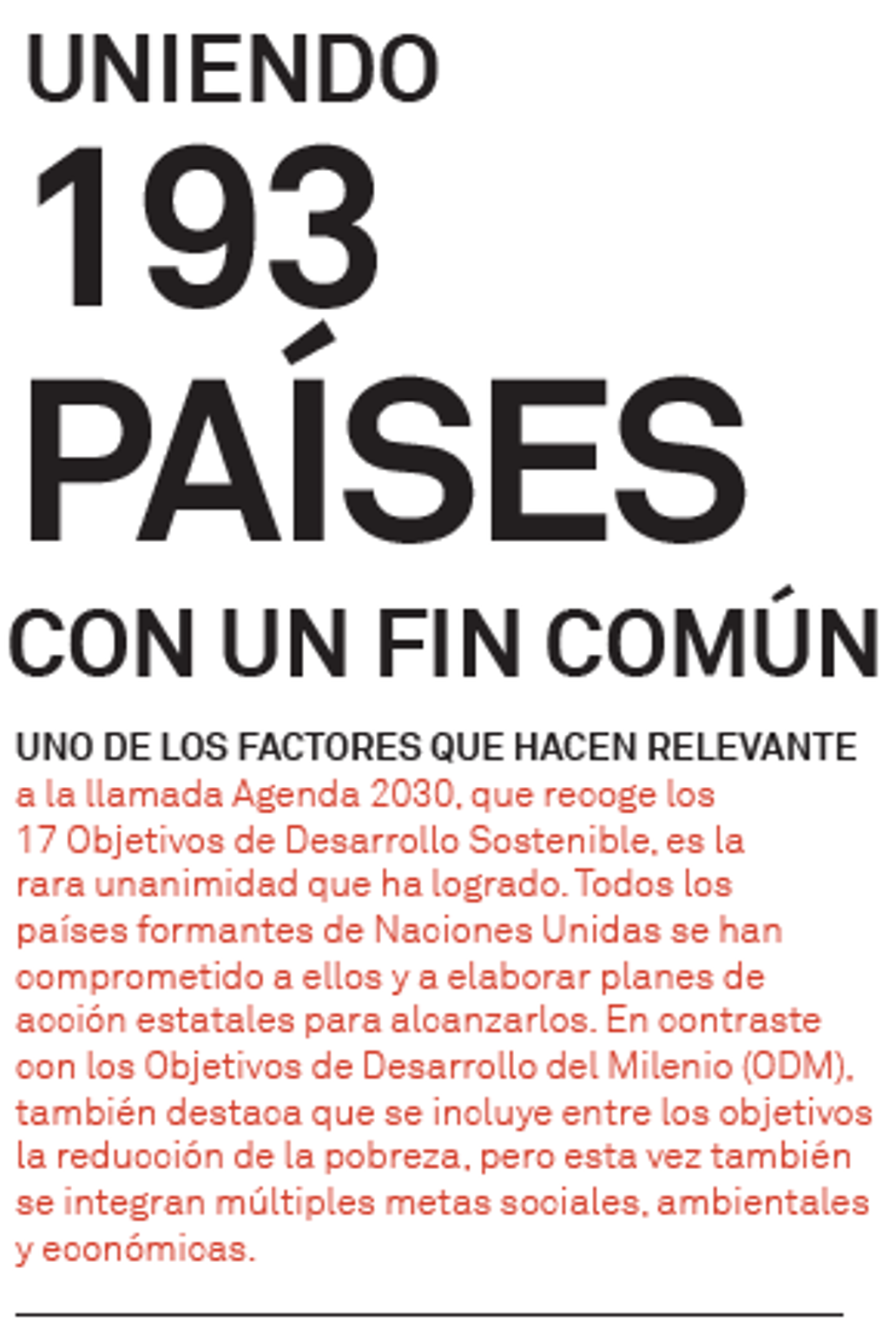 Los 17 Objetivos de Desarrollo Sostenible (ODS) renuevan y amplían el compromiso de la comunidad internacional, con metas como buscar por primera vez el “fin de la pobreza” (ODS 1). Entre 2016 y 2030, las nuevas metas involucrarán a todo el mundo, no solo a los países en desarrollo como hacían los ODM, y exigen una mayor contribución del sector privado a su financiación.