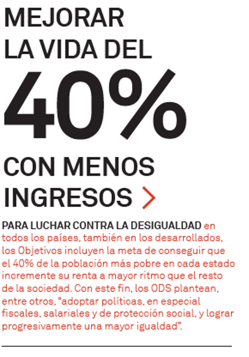 No todo son avances en el mundo de hoy. También “aumentan las desigualdades” y “el cambio climático puede hacer retroceder los logros alcanzados en las últimas décadas”, según la ONU. En respuesta a ello, los Objetivos de Desarrollo Sostenible “abarcan más que los ODM”, con la pretensión de afrontar las desigualdades, el cambio climático, la preservación de los océanos, el consumo y la producción sostenibles o la paz y la justicia, citando algunos de sus ámbitos de actuación.