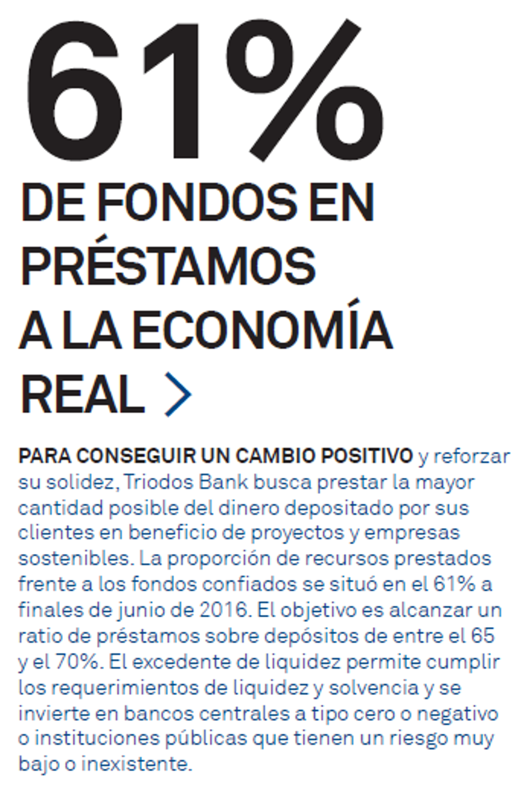 “El entorno de bajos tipos de interés tiene gran influencia en nuestras cuentas”, explica Montserrat Morales, directora económica y de riesgos de Triodos Bank. “Por un lado, por el pago de intereses negativos por los fondos depositados en bancos centrales, ya que el tipo que el BCE aplica a los bancos está en el -0,4%; por otro lado, al recibir menos ingresos por nuestra actividad crediticia”.