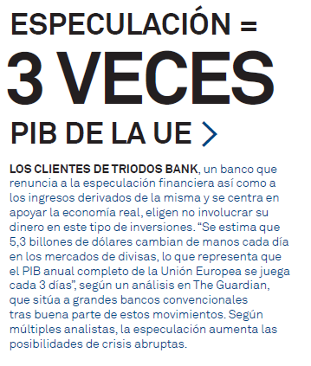 “Se ha creado mucho dinero, pero en realidad no sabemos qué hacer con él”, apunta el consejero delegado del Grupo Triodos, Peter Blom. “Es muy curioso que exista un exceso de liquidez en el sistema que no está conectado con la economía real, y que al mismo tiempo haga falta más dinero para cuestiones como la salud o la reducción de la desigualdad.