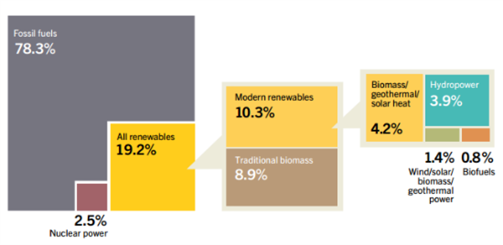 Hoy suponen una cuota superior a la de la energía nuclear en el consumo global final de energía, según la entidad de referencia REN 21, y continúan en pleno desarrollo en todo el mundo.
