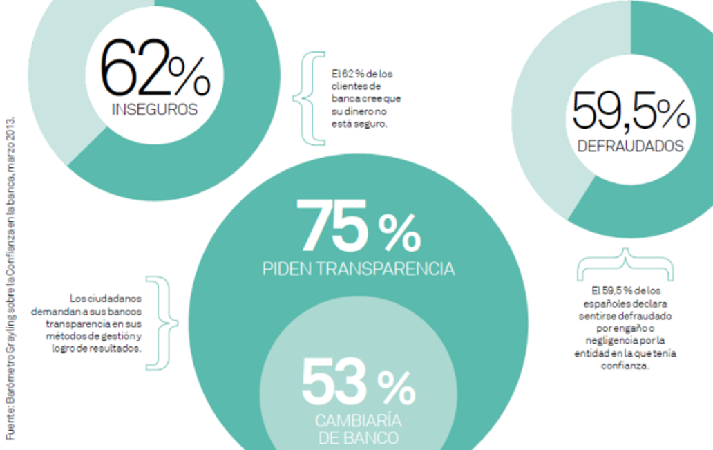 Ante esto, no es de extrañar que los ciudadanos suspendan a las entidades bancarias en empatía, solidaridad y sensibilidad, según el Índice de Generosidad de Marca. Más grave aún es la desconfianza en un sector que vende y oferta “crédito”. El 76 % de los españoles no confía en la banca, según un estudio de la consultora Grayling realizado en 2013, y el 59,5 % declara sentirse defraudado por su entidad. ¿Y qué hacer ante este panorama? El propio presidente de la Asociación Española de Banca (AEB), José María Roldán, reconocía durante un discurso en el Foro de la Nueva Economía a finales de 2014 que mejorar la reputación del sector es un tema serio: “O la banca recupera la confianza del cliente o puede perecer, ya que el negocio bancario no puede estar reñido con la ética, sin la que no es viable”, declaró.