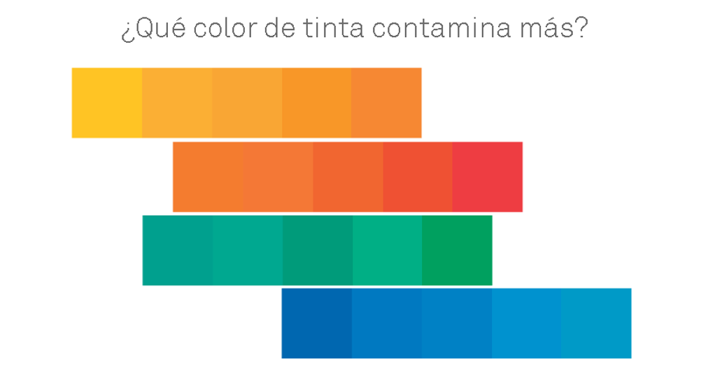¿Qué color de tinta es el más contaminante? Aumenta la conciencia sobre la importancia de ahorrar papel, pero el impacto medioambiental de otros productos de impresión es menos conocido. Por ejemplo, se calcula que a nivel mundial cada año se utilizan 1.000 millones de cartuchos de tinta, muchos desechados sin un tratamiento correcto. Un problema significativo teniendo en cuenta que cada uno de ellos, compuesto por elementos altamente contaminantes, puede tardar en torno a 400 años en descomponerse.