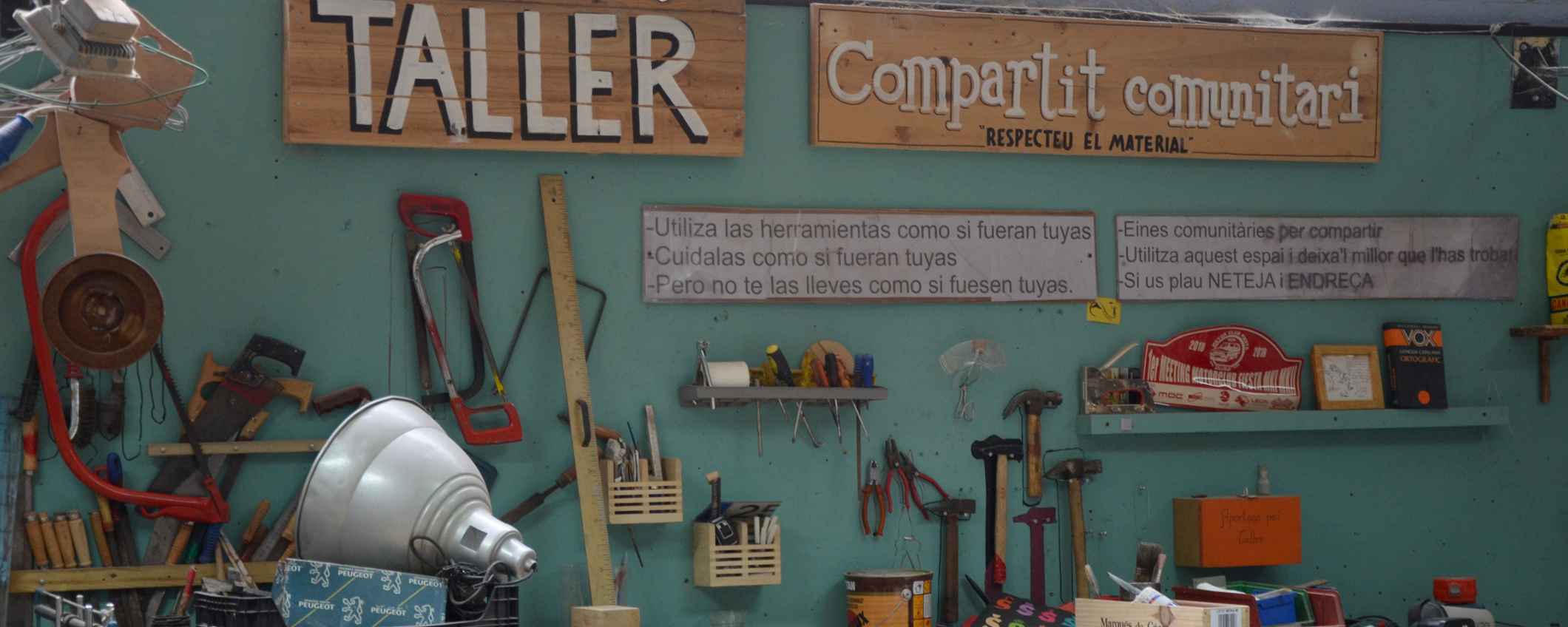 Joan y su equipo trabajan en un antiguo taller de 4.000m2 que utilizan junto a otras entidades y asociaciones en Mataró, Barcelona. Tanto el espacio como las herramientas son compartidos, así como las salas de reuniones o despachos y las zonas para descansar o comer.