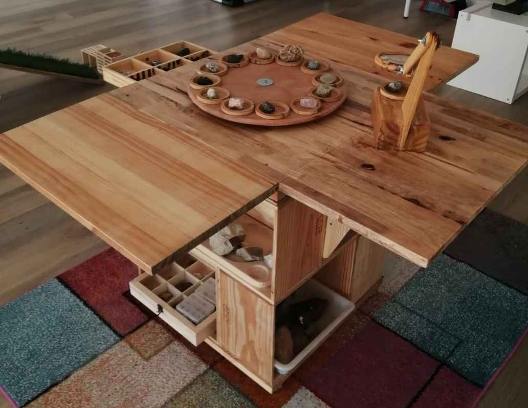 La plantilla saca adelante pedidos de hasta 5.000 piezas, sobre todo para hoteles: carritos, bandejas, jaboneras, etc. Cualquier estilo, formato o medida se hace posible a partir del trabajo personalizado. Por ejemplo, hace poco crearon una mesa muy especial para un colegio. Permite a los más pequeños descubrir los tipos de minerales, tocarlos y verlos de cerca.