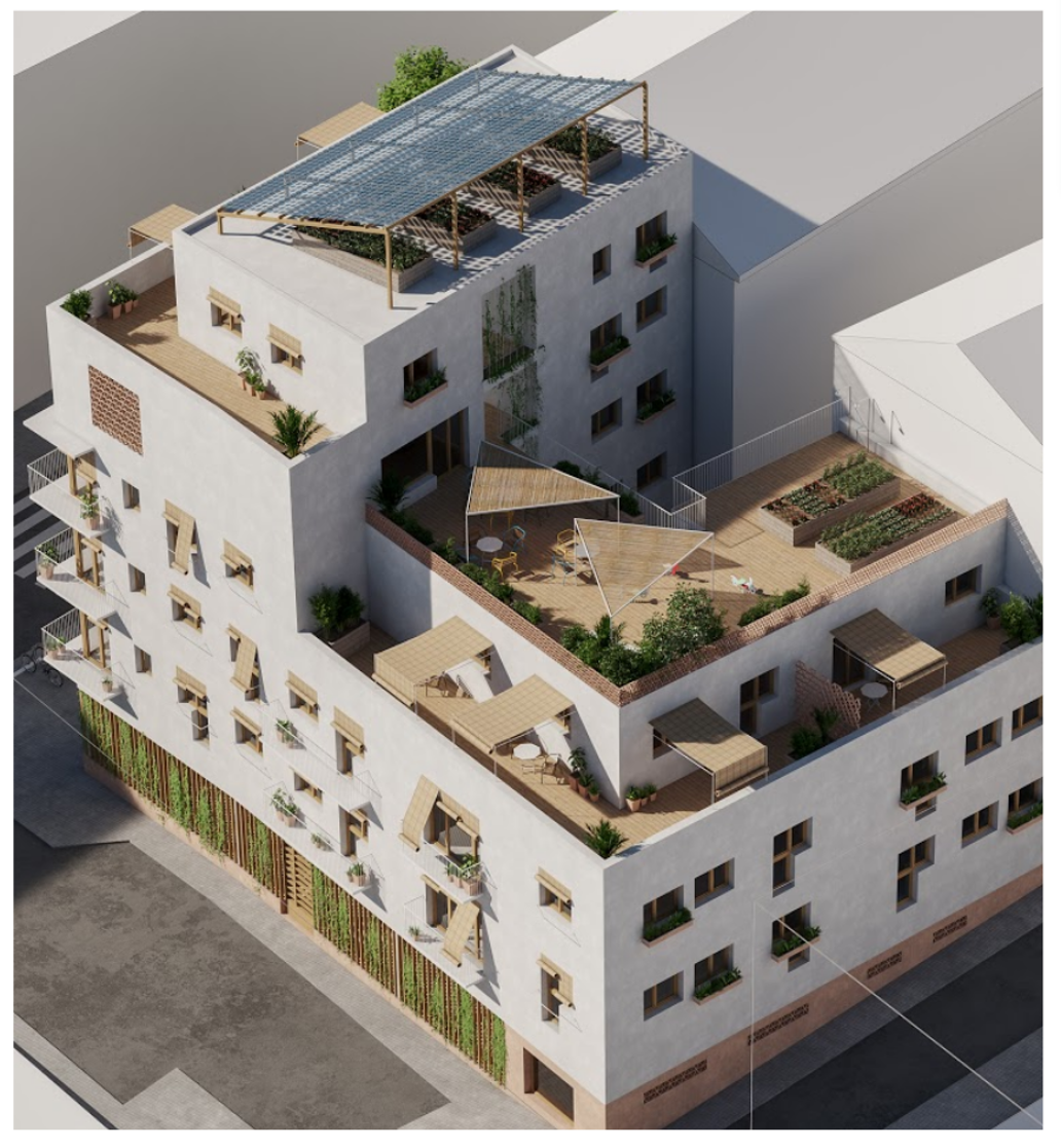 Entre las medidas que instalan en sus viviendas, se encuentran sistemas de climatización centralizada o de gestión eléctrica con paneles fotovoltaicos, que cubren una parte del consumo. Según Manel, “se trata de edificios sin gas en los que los inquilinos pagarán una factura de la luz notablemente inferior a la que costearían en una vivienda convencional”.