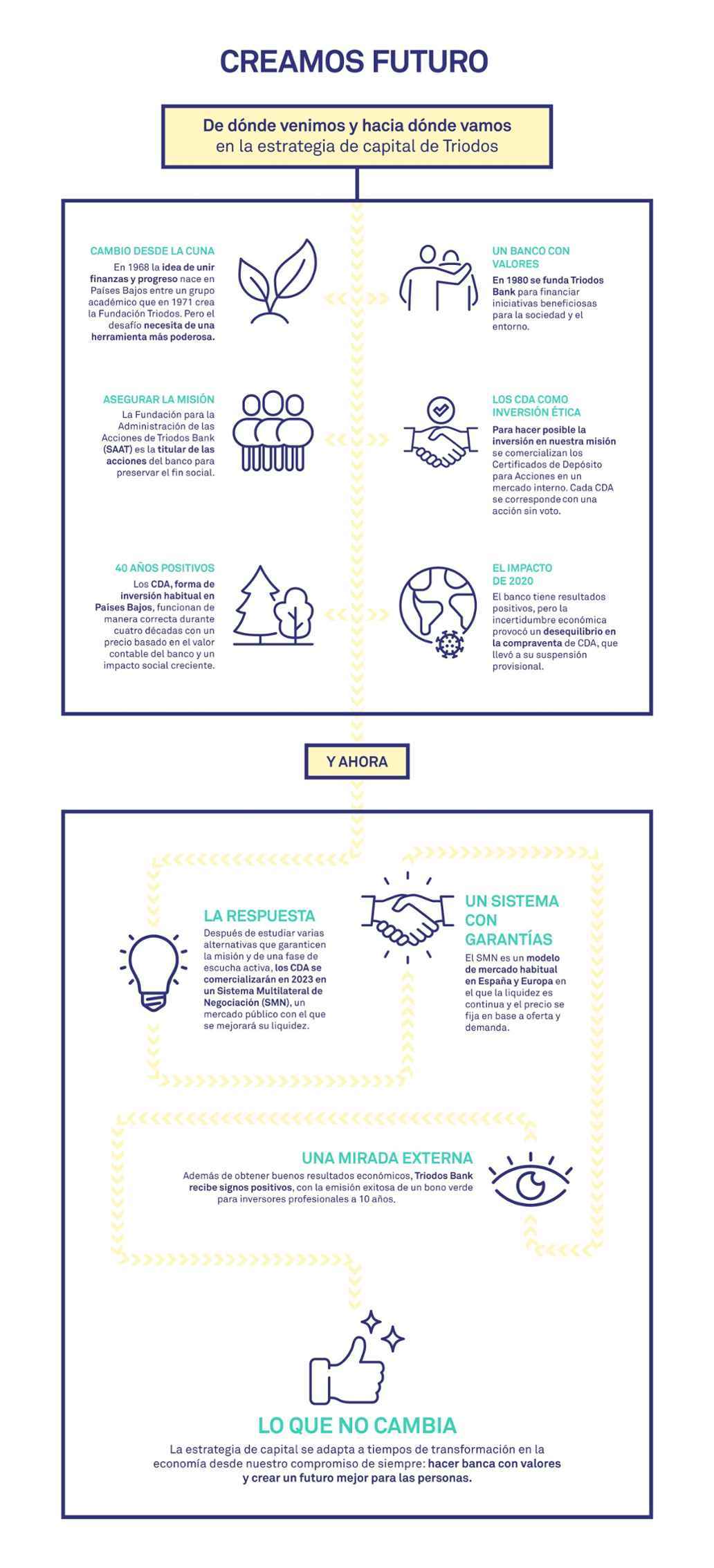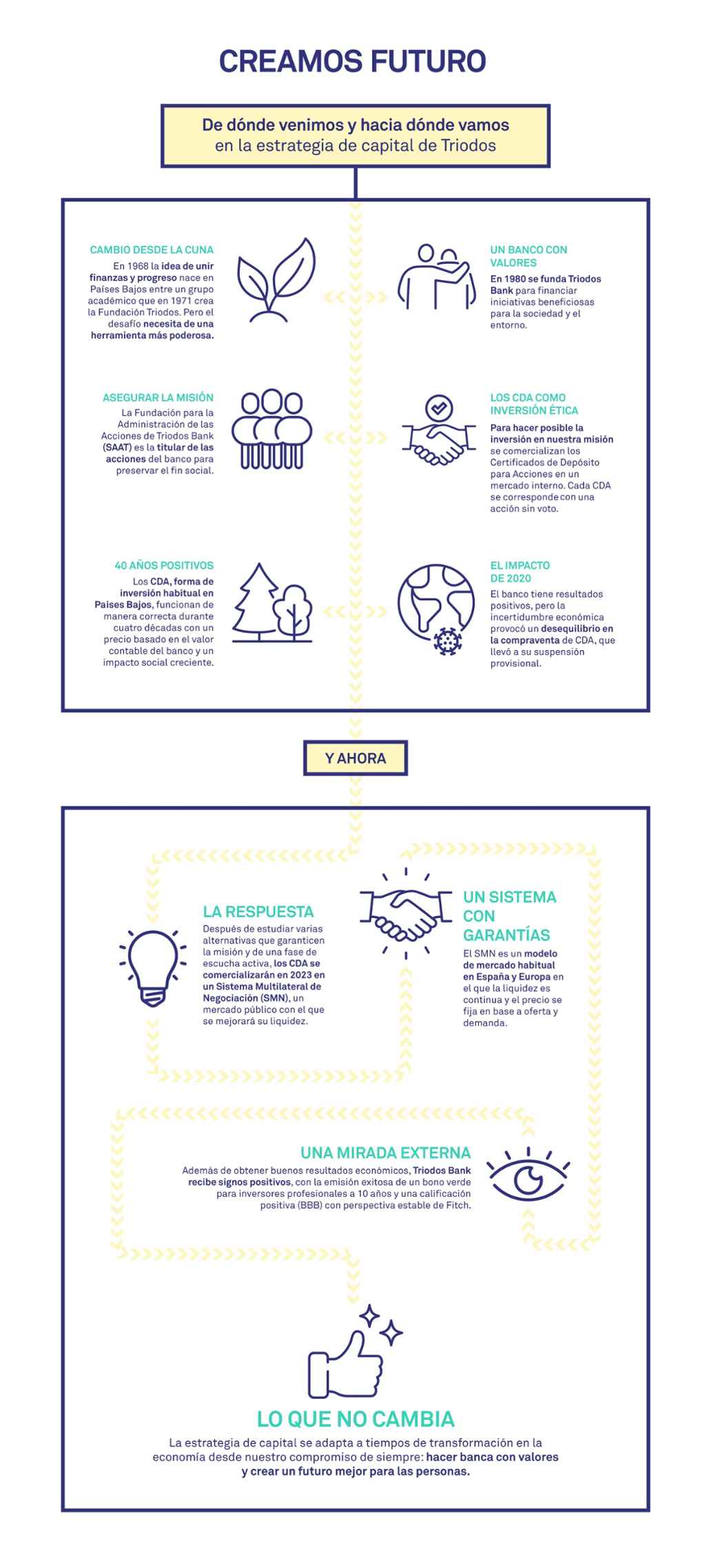 Lanzamos 'Creamos futuro', una serie de piezas informativas pensada para personas como tú, que quieres ser consciente de tu relación con el dinero. Te contaremos de forma sencilla cómo funciona nuestra estrategia de capital y modelo de propiedad, corazón de nuestro impacto social como banca con valores y su futuro.