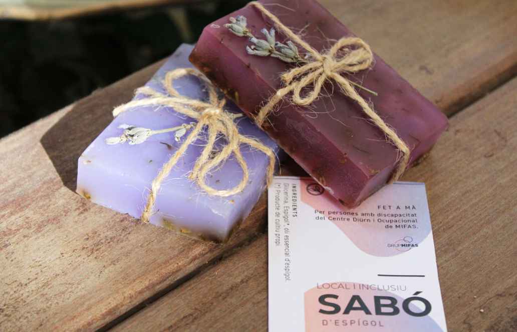 Jabones artesanales elaborados por personas con discapacidad en el Centro Ocupacional Mifas. Estos jabones de lavanda no solo son un regalo sensorial, sino que también ayudan a financiar actividades inclusivas para quienes más lo necesitan.